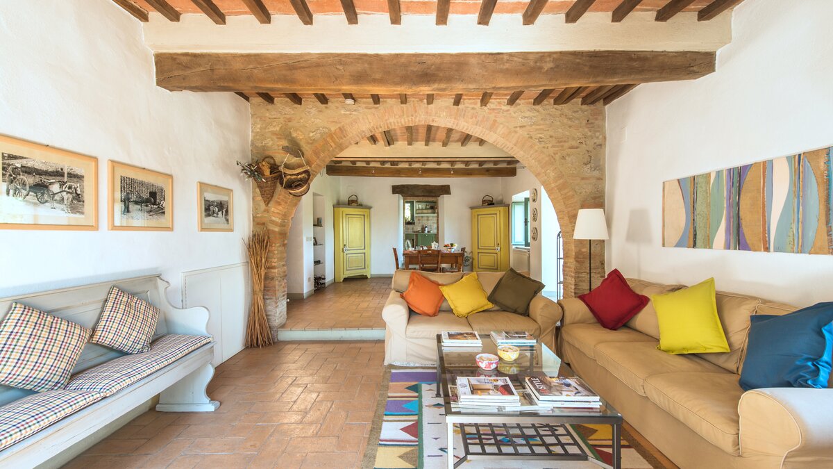 In einer atemberaubenden Waldlandschaft, mit wunderschönem bukolischem Blick auf zeitlose Hügel und Täler, ist diese Familienvilla in der Toskana von Ruhe durchdrungen und dennoch in der Nähe historischer Städte.
