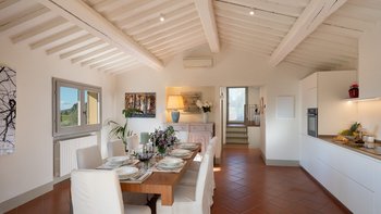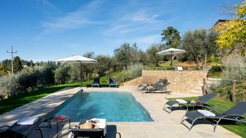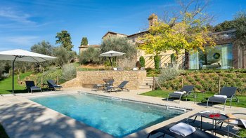 Casa del Giglio is a refined country villa that combines contemporary style with authentic Tuscan charm. With a private pool and sweeping countryside views, it is an inviting retreat for both relaxation and exploration.