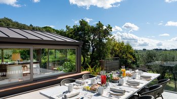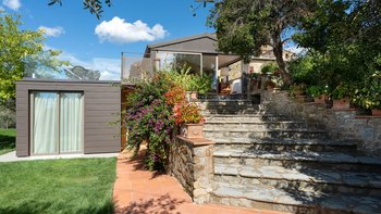 Im Außenbereich lädt eine von einem großen Baum geschützte Panoramaterrasse zum Essen im Freien ein. Gepflegte Rasenflächen umgeben einen neuen Privater Pool, der ideal zum Sonnenbaden der Toskana geeignet ist. Für größere Zusammenkünfte kann das Casa del Giglio mit seinem Schwesterhaus, Le Cascine, kombiniert werden, um einen außergewöhnlichen Rückzugsort für Familie oder Freunde zu schaffen.