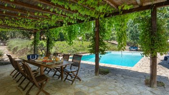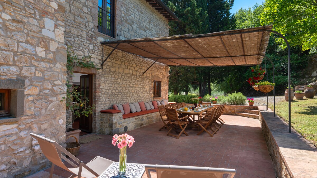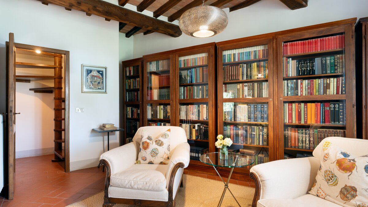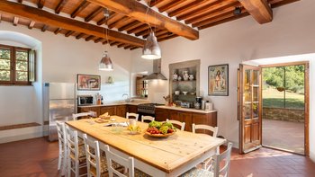Abgeschieden in den Falten bewaldeter Hügel gelegen, ist dieses alte Steinhaus mit seiner zeitlosen Landschaft perfekt zu Hause. Von außen beeindruckend, ist es in seinen großen, luftigen Räumen willkommen, in denen geglättete Holzbalken und Terrakotta-Fußbodenfliesen einen zeitgemäßen Rahmen für den Komfort des 21. Jahrhunderts schaffen. Rustikaler Chic verschmilzt unmerklich mit schlichter Eleganz und Bildern und Fotografien der künstlerischen Eigentümer. In der charmanten Frühstücksküche, gut ausgestattet mit modernen Geräten, im kühlen Landhausstil und im angrenzenden geräumigen, aber gemütlichen Wohnzimmer. Ein separater Bibliotheksbereich mit umfangreicher Büchersammlung und ein Fernsehraum sorgen für ungezwungene soziale Räume, schöne Schlafzimmer verfügen über Himmelbetten, Badezimmer sind mit poliertem Marmor und ein Spielzimmer mit Tischtennis, das sich zum Garten hin öffnet. Hier gibt es schattige Terrassen zum Essen oder einfach zum Entspannen und lange Rasenflächen, die von Lavendelbänken gesäumt und mit Bäumen bestreut sind. Der schöne Swimmingpool befindet sich in einem erhöhten und geschützten, sonnigen Ort ca. 50 m von der Villa entfernt. Große Gruppen teilen sich das gleiche Privatanwesen wie die beliebte Schwestervilla Vercenni und vermieten beide Häuser und speisen gemeinsam auf der Terrasse des Vercenni. Dessen Personal kümmert sich sehr gut um die Gäste und das Casa di Sopra bietet einen Kochservice für eine besonders entspannte Atmosphäre.