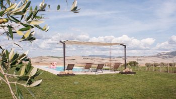 Der Pool ist ideal für Familien mit kleinen Kindern, da er an einem Ende einen kleinen abfallenden „Strand“ hat, der 20 cm tief ist, oder für Erwachsene, die gerne im Niedrigwasser liegen, während sie sich sonnen. Der Garten und der Poolbereich sind von Blumen und Sträuchern umgeben, zusammen mit dem spektakulären 360 'Blick über die Landschaft. Vom Haus aus gibt es zwei Glasschiebetüren, die auf die überdachte Terrasse führen, wo es einen langen Tisch, Sofas und einen Weg zum Pool gibt. Der lokale Stadt Saline di Volterrra, 10 Minuten mit dem Auto, hat alles, was Sie brauchen, von frischem Brot und Bauernhöfen bis hin zu Restaurants und Bars und. Ein perfekter Ort für Tagesausflüge in historische Städte wie Siena und San Gimignano oder Strandtage entlang der Küste, die auch Segelbootausflüge anbieten. Des kleinen Weiler Montecatini Val di Cecina ist nicht zu weit und für diejenigen, die gerne wandern, gibt es einen Weg vom Haus, der zu ihm von der Unterkunft führt. Den Freitagsmarkt und die Aussicht sind ein Muss von dort auch die Restaurants sind ideal für einen Abend.