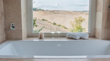 Zwischen den Hügeln von Volterra befindet sich dieses luxuriöse Ferienhaus, das von einem italienisch-skandinavischen Ehepaar entworfen wurde. Beim Betreten des Hauses spüren Sie den Einfluss der skandinavischen Ursprünge, eleganten Asoft-Farben, Holzböden und großen Fenstern – ein Haus, das für die Eigentümer selbst geschaffen wurde. Einem großen offenen Grundriss Bereich begrüßt Sie bei der Ankunft mit den Wohn-Ess- und Küchenbereichen, die die schöne, einzigartige Holztreppe in der Mitte des Raumes umgeben. Den gemütlichen Wohnbereich mit offenem Kamin mit Sofas und Sesseln, einen zweiten kleineren Fernsehbereich, einen Essbereich mit großem Holztisch und den voll ausgestatteten Küchenbereich mit allen modernen Geräten. Es gibt eine überdachte Terrasse mit spektakulärem Blick auf Volterra in der Ferne, wo Sie morgens frühstücken oder abends einen Aperitif genießen können. Dieser Villa ist ein Traum für diejenigen, die Entspannung und den Genuss von luxuriöser, komfortabler Einrichtung in einer friedlichen, wunderschönen toskanischen Umgebung suchen. Denen Schlafzimmer im Obergeschoss verfügen alle über ein eigenes Duschbad mit begehbaren Duschen und luxuriösen Pflegeprodukten, das Schlafzimmer im Untergeschoss verfügt über ein Bad, das auch für behinderte Gäste geeignet ist. Ein gemütliches Gefühl mit sanften Lichtfarben und schönen Materialien.