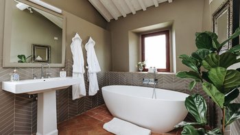 Mit neun Zimmern, die sich zwischen drei Gebäuden befinden, privaten Gärten und viel Platz, ist Il Santuario der ideale Aufenthalt für eine große Familie oder eine Gruppe von Freunden, die sich entspannen und die toskanische Landschaft genießen möchten; und mit einem Concierge-, Hausmädchen- und Kochservice ist dies auf jeden Fall möglich.