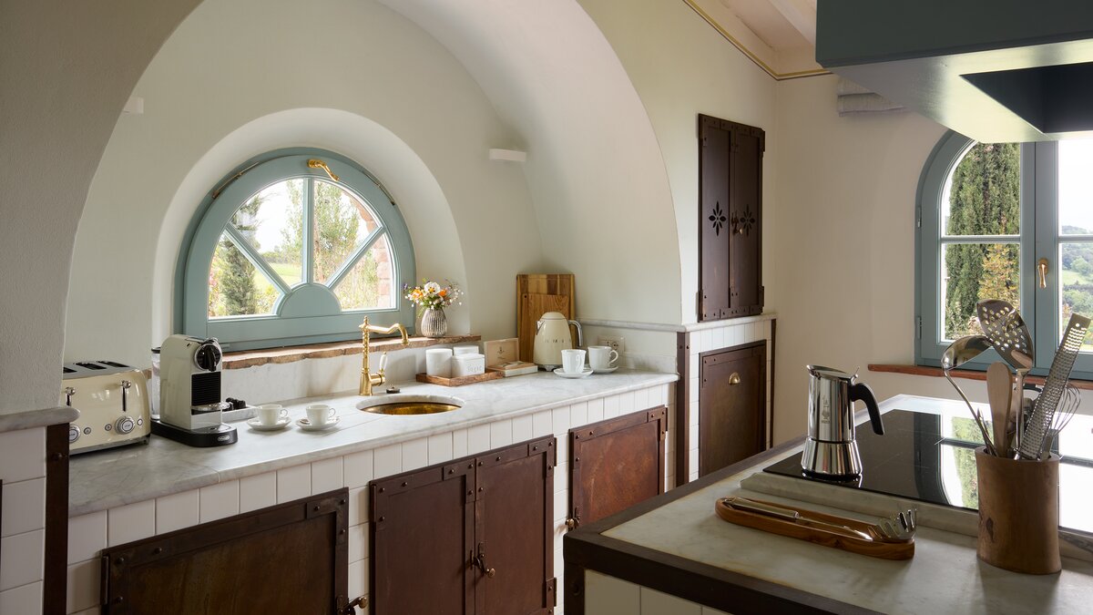 Im Inneren der Villa sorgt das OFFENER GRUNDRISS Design des Wohnzimmers für eine sofortige warme und einladende Atmosphäre für die Gäste. Dieser ergänzt den großen Essbereich der Villa und die voll ausgestattete Küche, die sich auf einen überdachten Sitzbereich im Freien mit einer hervorragenden Aussicht öffnet. Im Obergeschoss verfügen die beiden Schlafzimmer über ein eigenes Bad und einen privaten Balkon, von dem wiederum die toskanische Landschaft in all ihrer Schönheit überblickt werden kann.