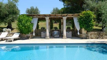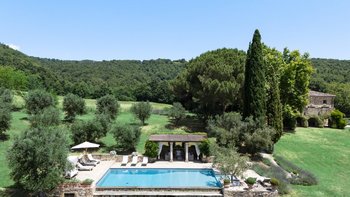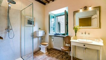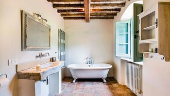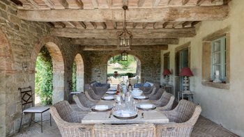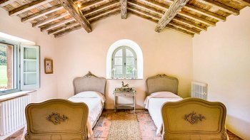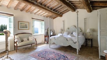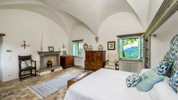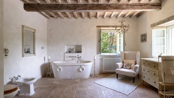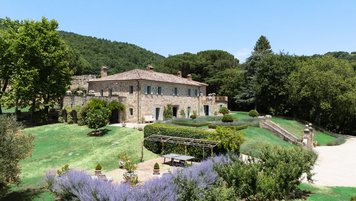 Die Schlafzimmer sind romantisch und individuell gestaltet, mit Himmelbildern und antiken Stücken, während die Badezimmer mit großen, ebenerdigen Duschen und freistehenden oder alten Marmorbädern ausgestattet sind. Dessen Haus bietet den perfekten Rahmen für das Leben im Innen- und Außenbereich und verfügt über eine wunderschöne Loggia zum Sitzen und Essen im Freien. Und in den Gärten führt ein Weg durch Pergola-Bögen zum Infinity-Pool und zum eindrucksvollen Pavillon am Pool. Ein Brunnen oben auf der Wiese stand einst in einem Kloster in Frankreich, ebenso wie der herrliche Torbogen in der Nähe des Swimmingpools. Eingebettet in eine große Privatsphäre, liegt die Villa in der Nähe des Castello di Reschio, das heute als eines der besten Resorts Mittelitaliens bekannt ist. Die Villa ist auch 8 km von den Geschäften und Restaurants in Mercatale und 12 km von Umbertide.