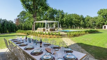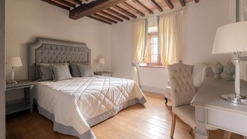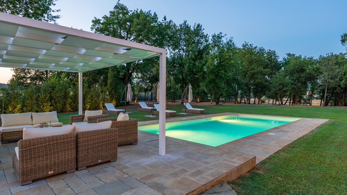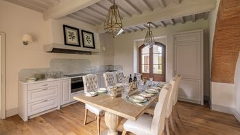 Im Inneren strahlt die Podere Lucilla Wärme und Eleganz aus. Denen acht individuell gestalteten Schlafzimmer, jedes voll klimatisiert, bieten den Gästen einen komfortablen Rückzugsort. Mit einem gemütlichen Wohnzimmer und einer voll ausgestatteten Küche, perfekt für kulinarische Enthusiasten, ist diese Villa der ideale Ort, um Kontakte mit Ihren Liebsten zu knüpfen. Ein spezieller Arbeitsbereich bietet Platz, um sich zu konzentrieren, während der Fitnessbereich mit Cardiogeräten und Terrakotta-Fliesen mit raffinierten, modernen Elementen und schaffen einen idyllischen Rückzugsort für die Gäste.