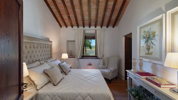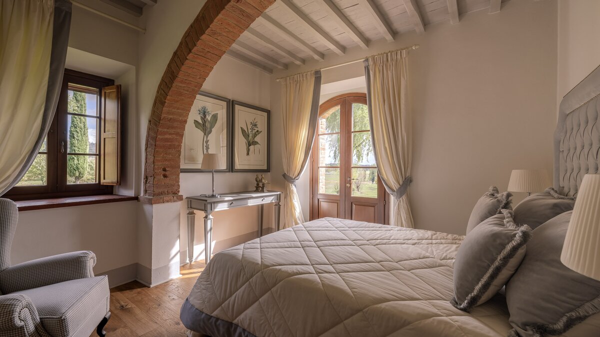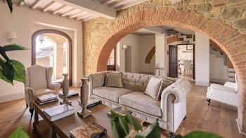 Podere Lucilla, eingebettet in die malerische Landschaft der Toskana, ist ein exquisites Anwesen mit acht Schlafzimmern, das historischen Charme nahtlos mit modernem Komfort verbindet. Dieses sorgfältig restaurierte Anwesen ist ein idealer Rückzugsort für große Familien oder Gruppen von Freunden, die das authentische italienische Leben erleben möchten. Umgeben von sanften Hügeln, alten Olivenhainen und üppigen Weinbergen, bietet das Podere Lucilla einen ruhigen Rückzugsort, während die kulturellen Schätze der Region leicht zu erreichen sind. Zu den herausragenden Merkmalen der Villa gehören ein glitzernder Pool, weitläufige Gärten und ein kleiner privater See, alle vor der Kulisse der zeitlosen Landschaft der Toskana.