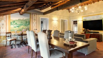Die Villa Elisa liegt im ruhigen Dorf Vorno in der Gegend von Lucca und ist für Exklusivität, Komfort und Geselligkeit konzipiert. Dessen Anwesen aus dem 18. Jahrhundert wurde vor kurzem renoviert und besteht nun aus einer eleganten Villa und einem charmanten Gästehaus, die insgesamt bis zu 18 Gäste beherbergen können. Im Inneren der Hauptvilla befinden sich geräumige Wohnbereiche, darunter eine Bibliothek, sowie sechs wunderschön gestaltete Schlafzimmer, jedes mit eigenem Bad. Es gibt auch einen fantastischen Weinkeller und einen herrlichen Spa-Bereich, ausgestattet mit Hydromassagedüsen, einer Sauna, einem Hamam, einem Behandlungsraum und einem Ruhebereich. Der Gästehaus ist komfortabel und gut ausgestattet, ideal für Jugendliche oder für diejenigen, die mit Personal reisen, mit drei Schlafzimmern, einem Wohnbereich und einer Küche.