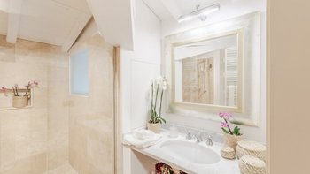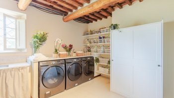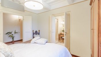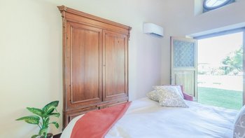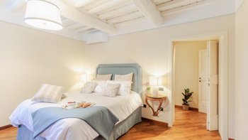 Die Villa bietet Platz für bis zu 10 Personen in fünf elegant eingerichteten Schlafzimmern, die jeweils über ein eigenes Bad verfügen. Deren Innenräume verfügen über originale architektonische Details wie rustikale Holzbalken und historische Böden, gepaart mit geschmackvollen Möbeln und natürlichen Materialien. Ein zusätzliches Schlafsofa ist auf Anfrage erhältlich und bietet somit Flexibilität für Familien.