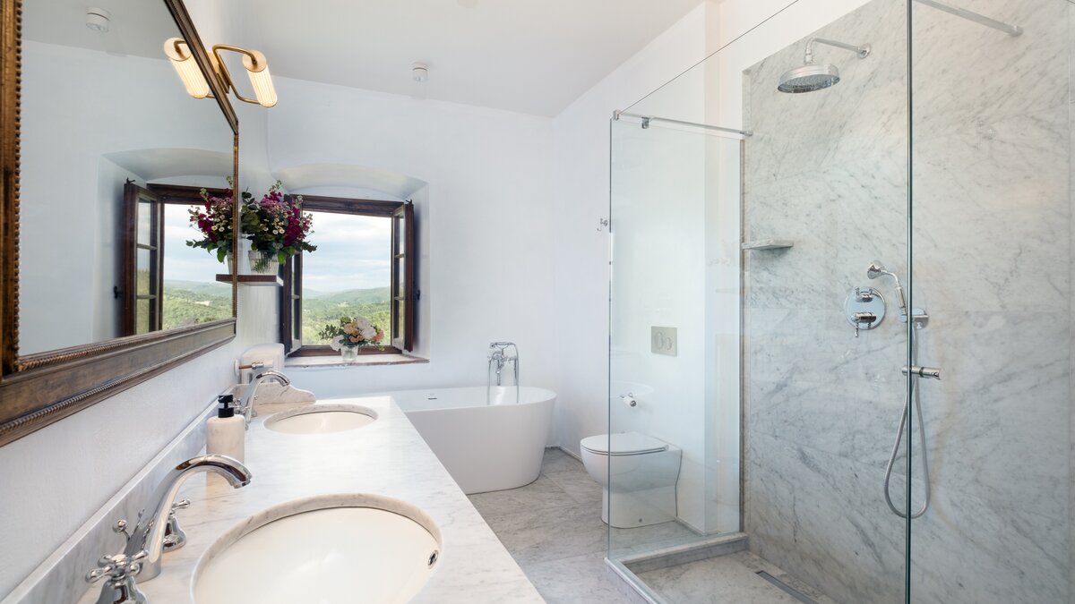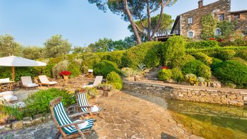 Einheimisches Personal, ein Kochservice, riesige Zimmer und formelle Rosengärten tragen zum Gefühl der Erhabenheit dieses historischen Landhauses bei. Und doch strahlt die Villa eine unwiderstehliche Atmosphäre aus, ein entspanntes Tempo und eine komfortable Kombination aus Charme der alten Welt und modernen Einrichtungen aus. Fast gleich weit zwischen Florenz und Siena liegt Montefiori inmitten von 5 Hektar Weinbergen und Olivenhainen. Dessen Gärten umfassen einen Boccia-Platz, einen Tennisplatz für Astro-Kurven und den Swimmingpool, der von einer Kräuterbank unterstützt wird und von einem schattigen Sitzbereich überblickt wird. Neben dem Haus befindet sich eine überdachte Terrasse für Mahlzeiten im Freien mit Blick auf die ruhige Aussicht und führt in das mühelos elegante Wohnzimmer, den bezaubernden Speisesaal im Landhausstil und den alten gewölbten Billardraum. Dessen Villa wurde gerade umfassend renoviert, einschließlich, aber nicht beschränkt auf neue moderne Sofas und Bettwäsche, neue Küche, neues Bad und Duschräume. Und das Haus ist nur einen Spaziergang von einem bekannten lokalen Restaurant La Cantinetta di Rignana und acht km von den Geschäften entfernt.