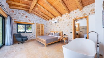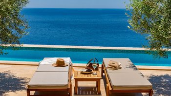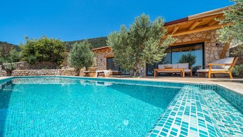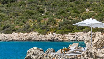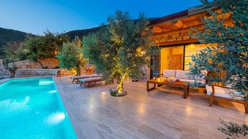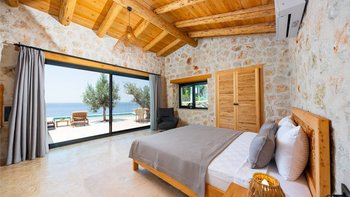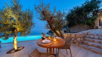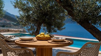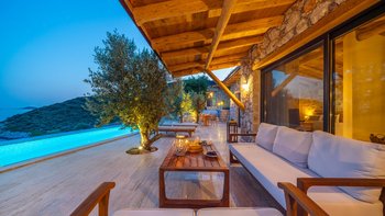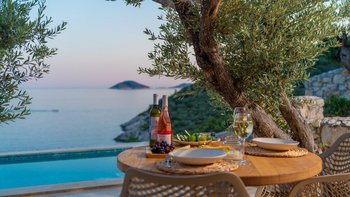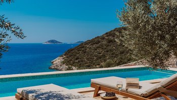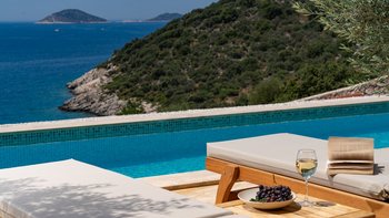 Villa Akim I ist stilvoll und anspruchsvoll mit einem Infinity-Pool und direktem Strandzugang – der perfekte Ort für Paare, die in Kalkan Urlaub machen.