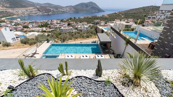 Villa Deniz ist ein geräumiges freistehendes Anwesen mit atemberaubendem Blick auf die Bucht von Kalamar, nur wenige Schritte von der Stadt Kalkan, die perfekte Wahl für einen wirklich erholsamen Luxusurlaub für eine Gruppe von Freunden oder große Familiengruppen.