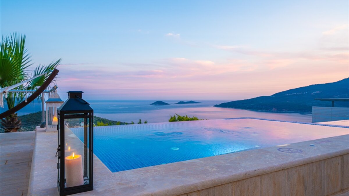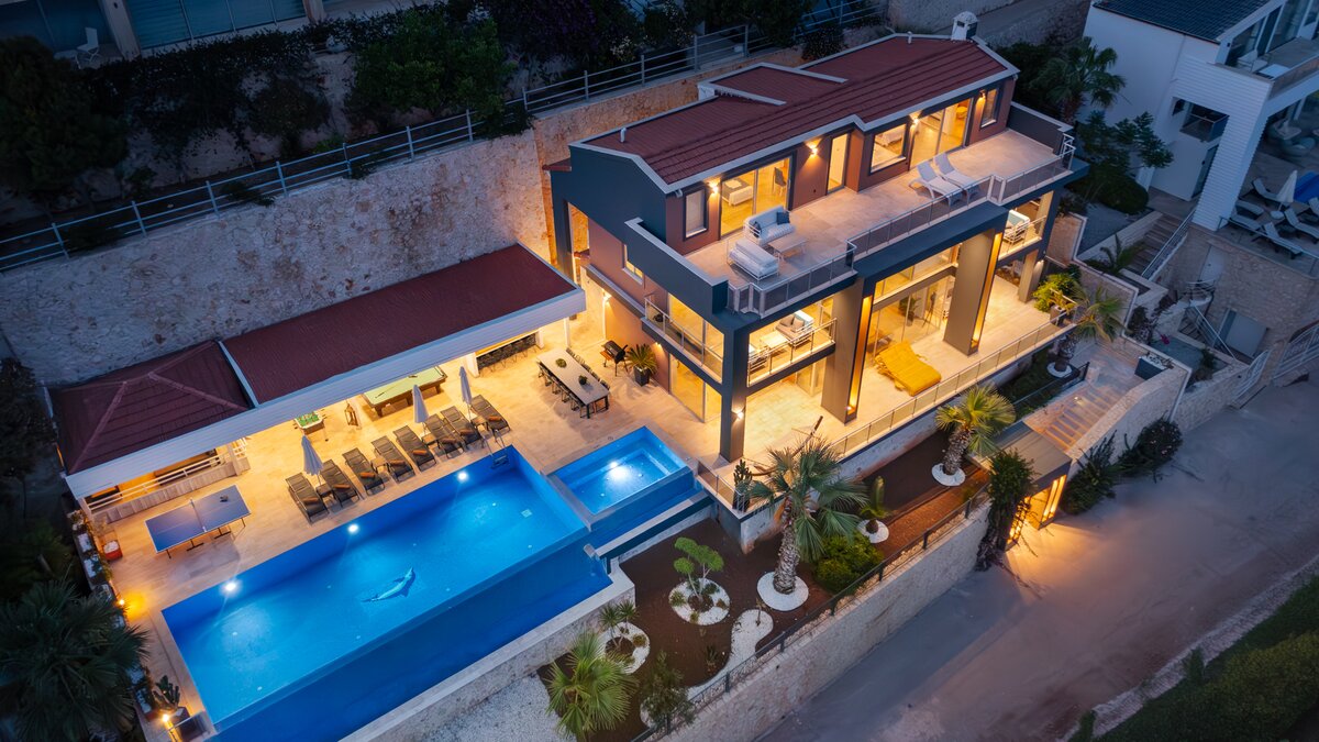 Mit herrlichem Blick von der schönen Poolterrasse über Kalkan und den nahe gelegenen Inseln, ist dies eine luxuriöse, moderne Villa, die Stil und Qualität ausstrahlt.