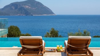 Die moderne und geräumige Unterkunft Villa Kenar in Kalkan bietet viel Platz zum Entspannen und Unterhalten. Sie bietet direkten Zugang zum Strand.