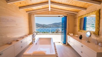 Villa Koti ist eine geräumige, freistehende Villa in einer günstigen Lage für die Altstadt von Kalkan, den Strand, den Hafen, die Geschäfte und Restaurants in ca. 10 Minuten zu Fuß entfernt. Diese aus lokalem Stein erbaute Immobilie hat einen immensen Charakter und einige großartige Außenbereiche, in denen Sie sowohl drinnen und auch draußen auf dem Pool und den Terrassen entspannen können. Der Balkon erstreckt sich über die gesamte Breite des Grundstücks im ersten und zweiten Stock und bietet eine herrliche Aussicht.