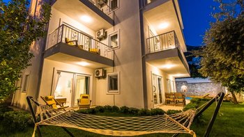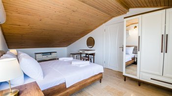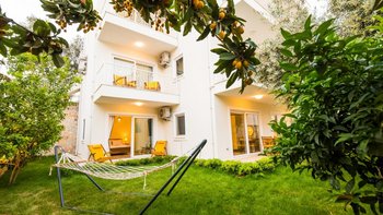 Villa Merkez ist eine Kombination aus drei Wohnungen, die zu einer Villa zusammengefasst sind, um den Gästen einen erholsamen Aufenthalt mit sieben Schlafzimmern zu bieten.