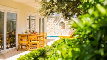 Die Villa Merkez ist ein großes, geräumiges Anwesen, das sich ideal für große Gruppen eignet, die eine Flucht in der Türkei suchen. Deren Villa ist in drei Wohnungen Split und bietet die perfekte Kombination aus Nähe und Privatsphäre. Jedes Apartment ist modern, hell und luftig. Des Apartment im Erdgeschoss verfügt über einen geräumigen Wohn-, Ess- und Küchenbereich sowie zwei Doppelschlafzimmer, die entweder zum Garten oder zu einer privaten Terrasse führen. Deren zweites Apartment befindet sich auf Straßenniveau und hat einen fast identischen Grundriss, nur dass die beiden Doppelschlafzimmer Zugang zu einem Balkon haben. Deren Apartment in der obersten Etage verfügt über eine ähnlich einladende Küche, ein Wohnzimmer und einen Essbereich. Es gibt drei Doppelschlafzimmer mit Bad, zwei mit Zugang zu einem Balkon und das dritte zur sonnenverwöhnten Dachterrasse. Dies ist der beste Ort, um die Sonne und die Aussicht von Kalkan zu genießen, komplett mit Liegestühlen und einem Tauchbecken. Es gibt auch einen privaten Pool im Garten.