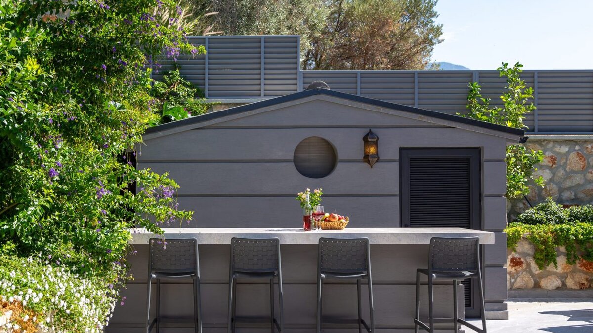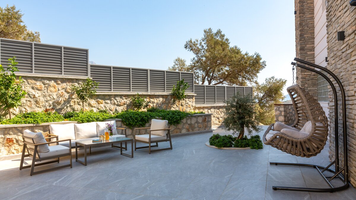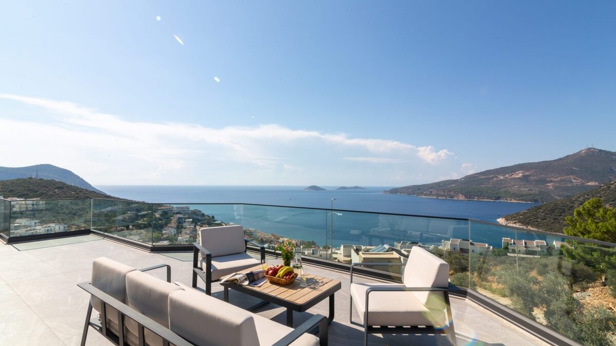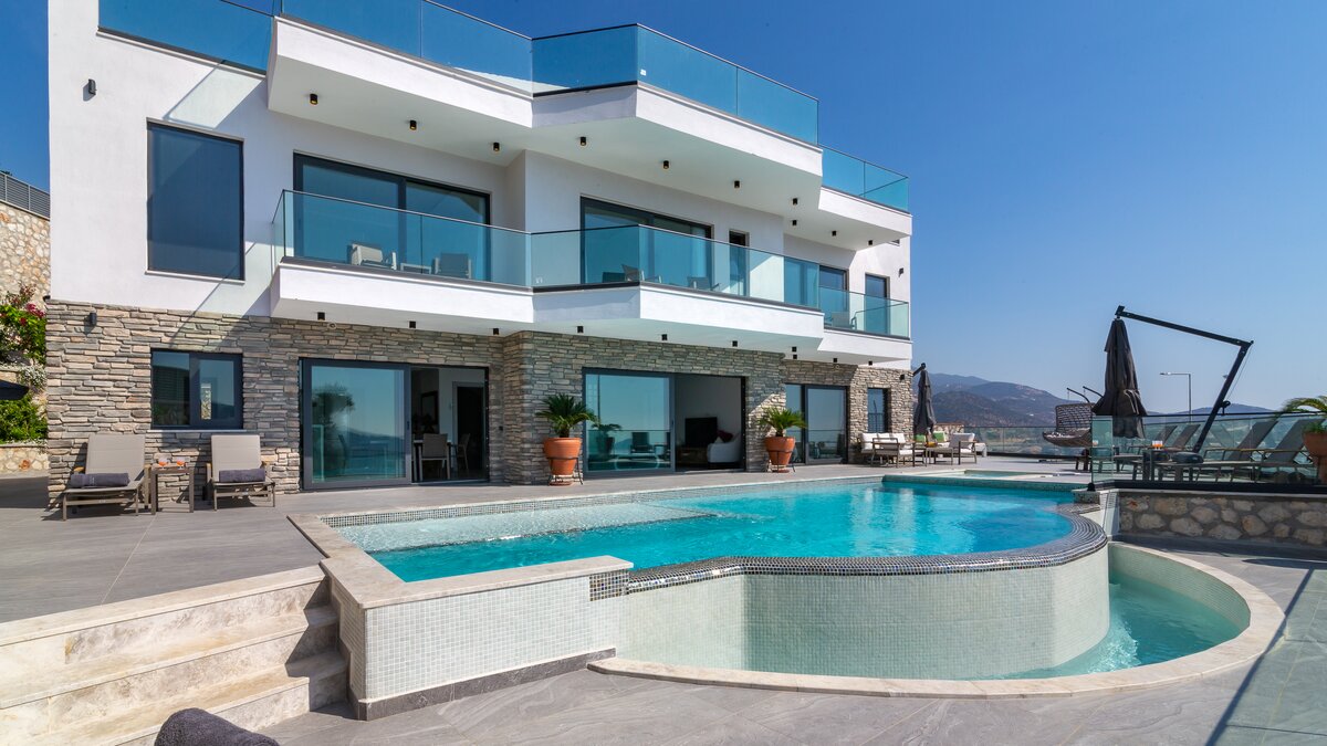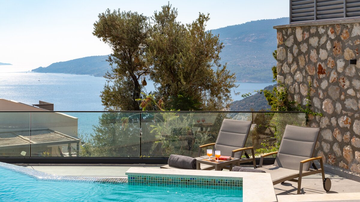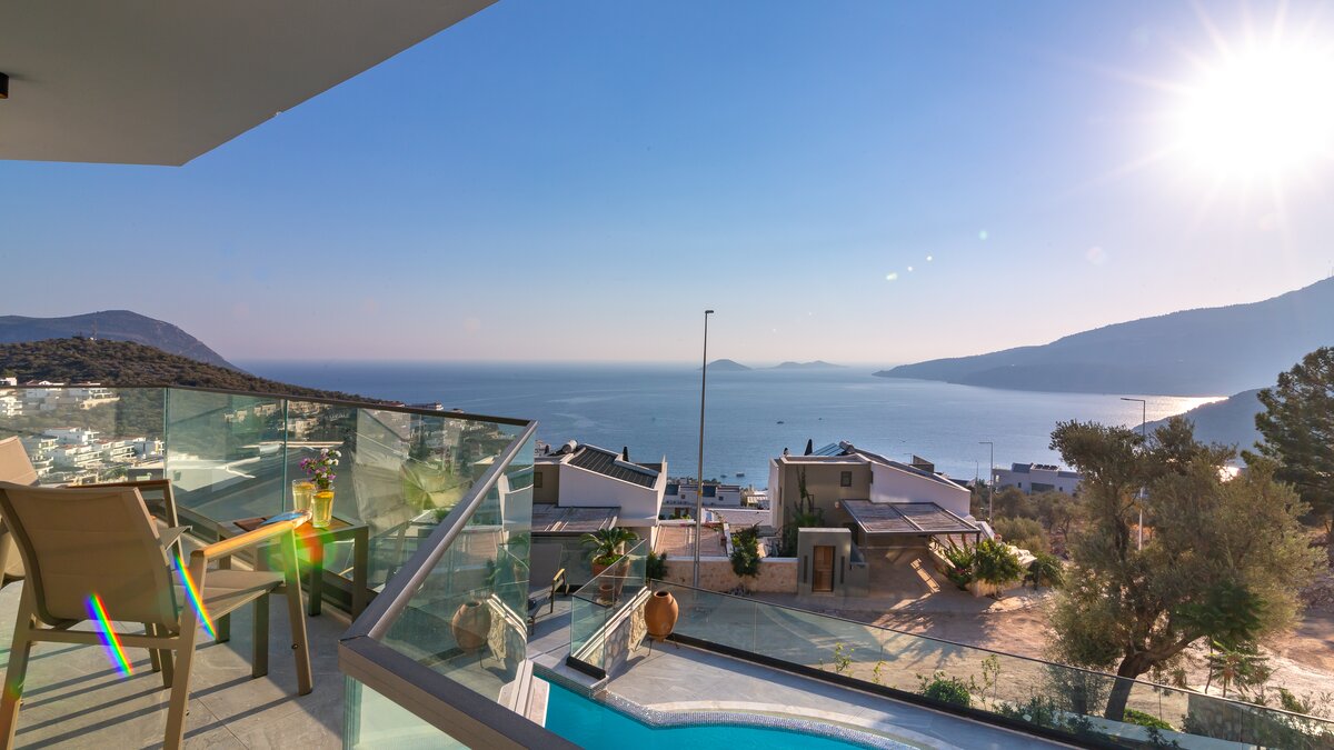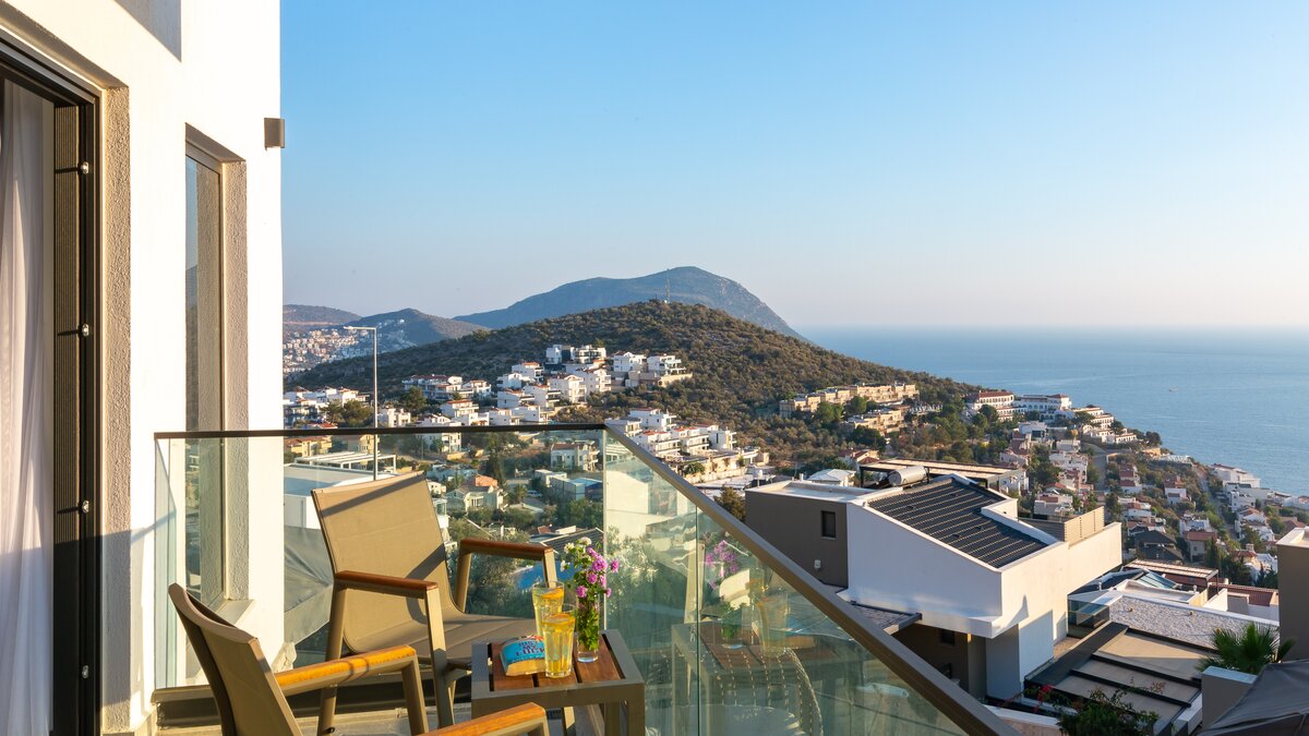 Auf der ersten Etage befinden sich drei Doppelschlafzimmer, alle mit eigenem Bad mit Dusche. Auf dieser Etage steht allen Gästen ein gemeinsamer Balkon zur Verfügung, von dem aus sie die Sonnenuntergänge von Kalkan bewundern können. Machen Sie sich auf den Weg in die zweite Etage, wo sich das Hauptschlafzimmer befindet. Dieser Suite verfügt über ein freistehendes Bad und eine private Dachterrasse. Im unteren Erdgeschoss befindet sich ein weiteres Doppelschlafzimmer mit eigenem Bad mit Dusche und eigenem Balkon.