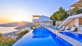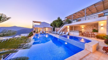 Die Villa Yalman ist eine moderne Villa mit fünf Schlafzimmern in Kalkan und bietet einen bezaubernden Blick über die Bucht und die Altstadt. Einiger der besten Bars und Restaurants der Stadt sind zu Fuß erreichbar.