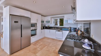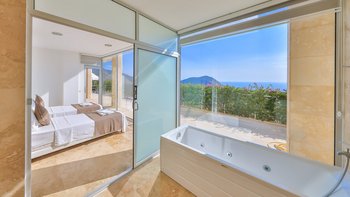 Im Inneren der Villa Yalman wurde mit Komfort und Stil im Hinterkopf entworfen. Der geräumige, offene Wohnbereich erstreckt sich auf die mittlere Etage und verfügt über zwei einladende Wohnbereiche, eine voll ausgestattete Küche und einen separaten Essbereich. Jedes der fünf Schlafzimmer verfügt über ein eigenes Bad und direkten Zugang zu den möblierten Terrassen, die einen privaten Rückzugsort für alle bieten. Für zusätzlichen Genuss sorgen zwei Schlafzimmer mit einem Indoor-Jacuzzi, während die Sauna und das Dampfbad der Villa eine Spa-ähnliche Atmosphäre schaffen, in der sich die Gäste nach einem erlebnisreichen Tag entspannen können.