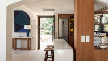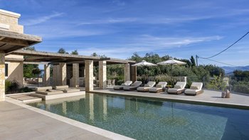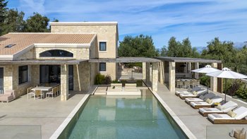 Die zweistöckige Villa verfügt über eine helle Inneneinrichtung mit kahlen Steinmauern, eine sehr moderne Küche mit offenem Schnitt zum Wohn-/Esszimmer und die fünf attraktiven Schlafzimmer verfügen alle über eine Klimaanlage. Ein weiteres Schlafzimmer mit Doppelbett befindet sich im Gästehaus, das Nähe und Privatsphäre perfekt verbindet und mit einem Bad und einer Küchenzeile ausgestattet ist. Dieser sehr einladende Villa liegt nur 2 km vom Hafen von St. Stephano und dem Strand von Avlaki und eine kurze Fahrt vom Nachtleben in Kassiopi und den Wassersportmöglichkeiten in Kalami entfernt.