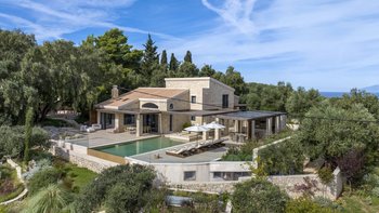 Diese Familienvilla auf Korfu ist ein hübsches Haus in einem wunderschönen Garten mit Blick auf die grünen Hänge zum Meer. Sie bietet einfachen Zugang zu einer Reihe von Resorts und ein einfaches Leben mit inklusive Kochservice.