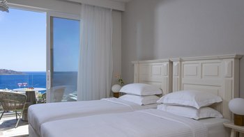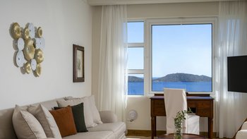Die individuell gestalteten Suiten sind in einem anspruchsvollen und eleganten Stil eingerichtet und verfügen alle über luxuriöse Marmorbäder mit Jacuzzi-Wanne und offene Terrassen mit idyllischer Aussicht. Die Deluxe Senior Suiten sind klimatisiert und gut ausgestattet und verfügen jeweils über ein Schlafzimmer mit eigenem Bad und Dusche, ein komfortables Wohnzimmer und einen eigenen Balkon oder eine Terrasse. Des Frühstücksbuffet wird im Restaurant Argo serviert.