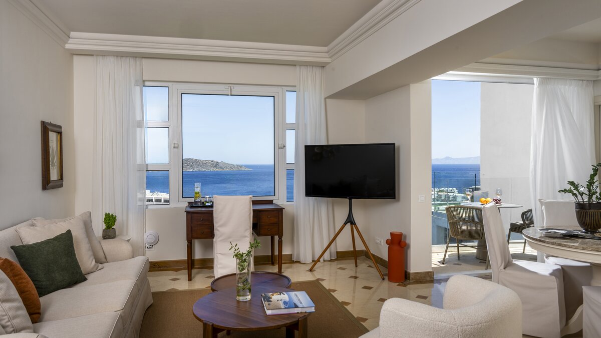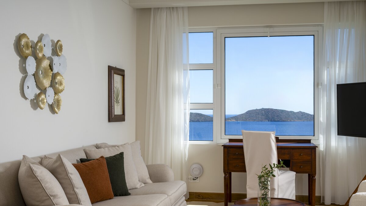 Mit dem exzellenten Service und den Einrichtungen des Luxushotels Elounda Gulf bieten diese eleganten Familiensuiten auf Kreta luxuriösen Komfort, eine ruhige Lage und einfachen Zugang zu den Attraktionen des Resorts.
