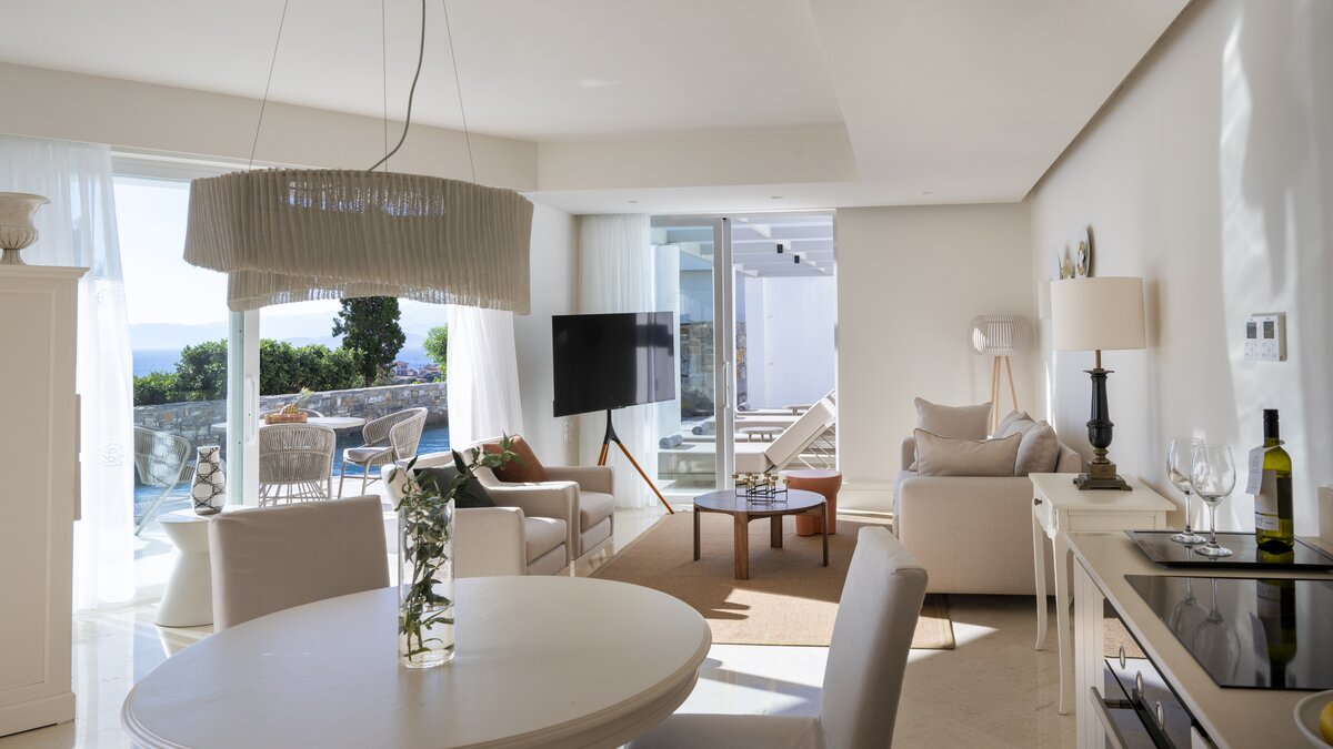 Die individuell gestalteten und voll klimatisierten Villen sind mit raffinierter Eleganz eingerichtet und verfügen jeweils über luxuriöse Marmorbäder mit Jacuzzi-Badewannen, einen Privater Pool mit Jacuzzi und eine offene, möblierte Terrasse mit idyllischer Aussicht. Der Elounda Villa verfügt über zwei Schlafzimmer mit Bad und eine offene Küche/Wohn-/Esszimmer mit Türen zur Poolterrasse. Kochservice und Massagen in der Villa sind nur einige der optionalen Extras.