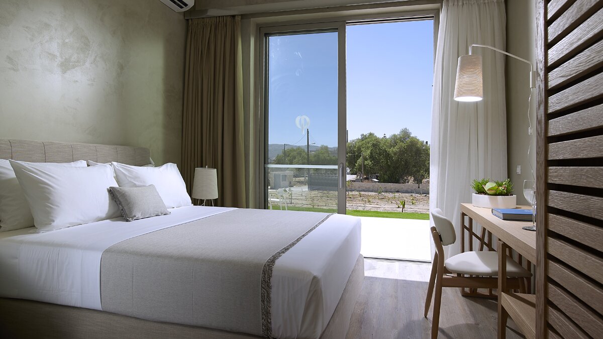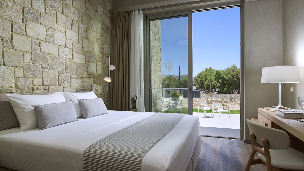 Die Außenbereiche stehen im Mittelpunkt des Erlebnisses. Ein Infinity-Pool blickt direkt auf die Ägäis, während private Terrassen einen ungestörten Blick auf die beiden Halbinseln bieten, die die Bucht umrahmen. Vom Rand des Gartens aus führt ein kurzer Weg direkt zum Strand, wo Kieselsteine zu feinem Sand verschmelzen, wenn man ins Wasser tritt. Deren Küste ist auch reich an Wildtieren, mit Falken, Reihern und Sandläufern, die oft in der Nähe gesehen werden.