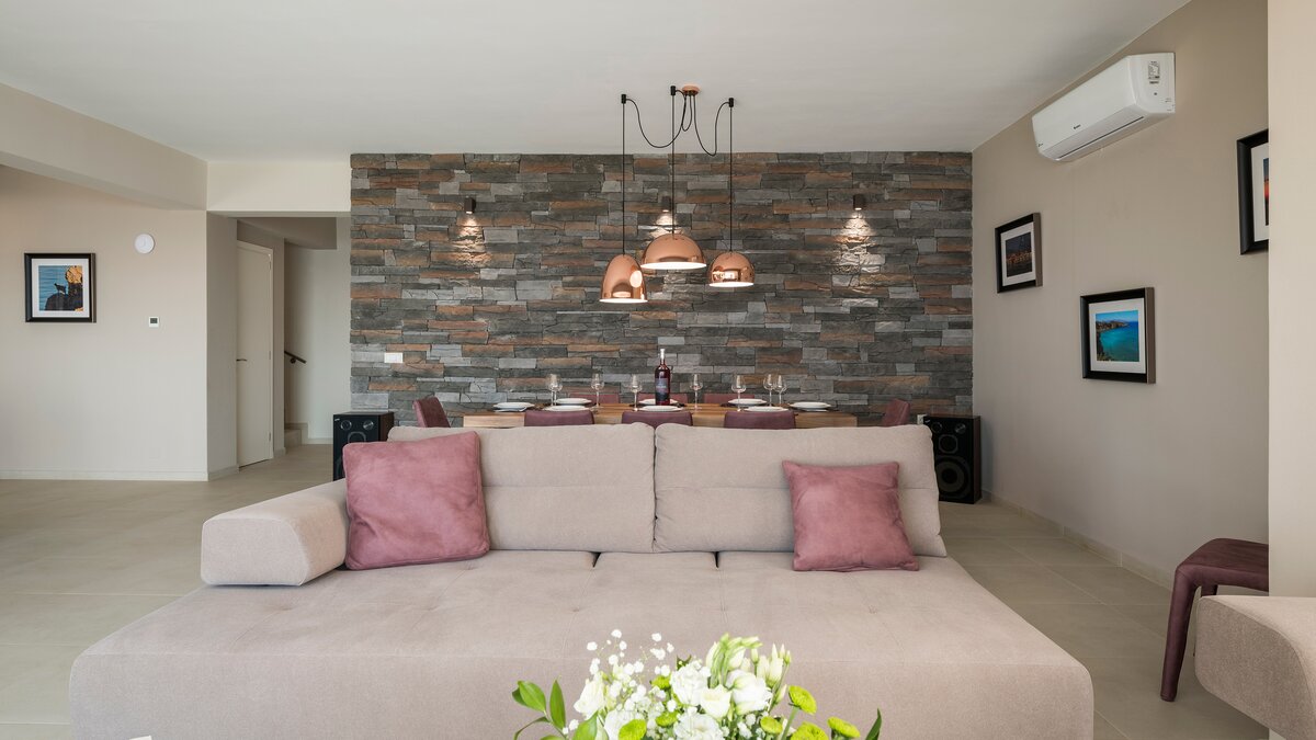 Die Villa Cala ist ein wunderschön gestalteter, moderner Rückzugsort in einer ruhigen Gegend etwas außerhalb des charmanten Dorfes Kokkino Chorio, mit herrlichem Blick über die Bucht und die Berge. Dessen Villa ist durchdacht auf zwei Ebenen angelegt und verfügt über geräumige Innenräume, große Glastüren und beruhigende, neutrale Töne.