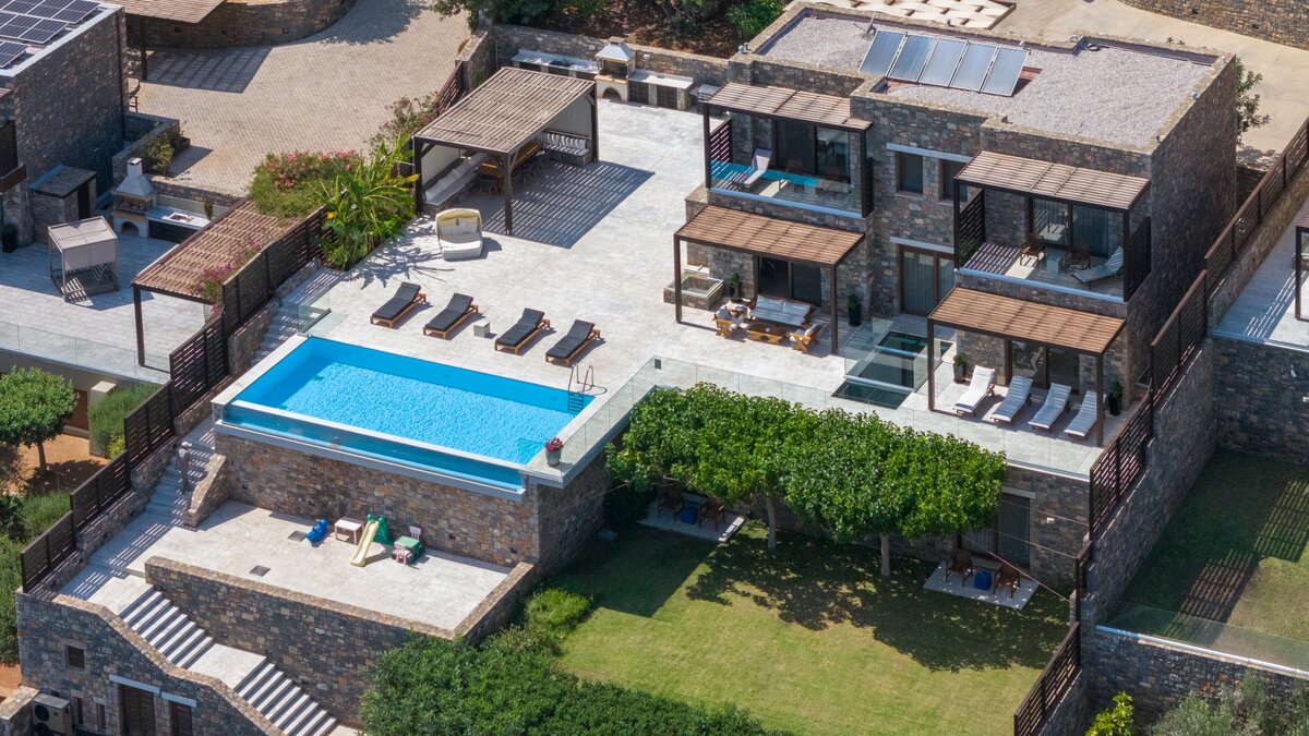 Die Villa Damia genießt eine hervorragende Lage in der Nähe des malerischen Dorfes Plaka und verfügt über geräumige Innenräume, Fitnessgeräte und einen eigenen Infinity-Pool mit herrlichem Meerblick.
