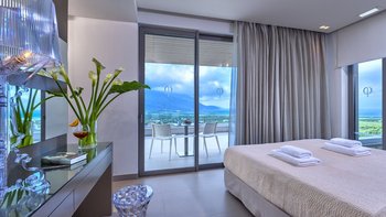 Villa Enchantia ist eine atemberaubende, moderne Villa, die einen ruhigen Rückzugsort mit atemberaubendem Blick auf das Meer und die Hügel bietet, ideal für eine kleine Familie oder zwei Paare.