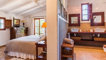 Die untere Ebene ist über 16 Stufen erreichbar, hat internen und externen Zugang und bietet im Vergleich zum Rest des Hauses einen bescheideneren Standard – die Zimmer sind besser für Kinder/Jugendliche geeignet und sind von Natur aus cool. Dessen Haus ist von Natur aus cool aufgrund der mallorquinischen Architektur. Es gibt eine Klimaanlage in den Schlafzimmern im Erdgeschoss und im ersten Stock. Bitte beachten Sie auch: Stornobedingungen: Innerhalb von 59 Tagen ist 100% der Miete fällig.