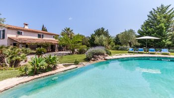 Aromatische Sträucher und Lavendel und leuchtend rosafarbene Bougainvillea-Duschen bilden die Kulisse für diese elegante mallorquinische Villa in bester Lage zwischen Pollensa und Puerto Pollensa. Eine schattige Veranda erstreckt sich über das ganze Haus, mit einem Esstisch mit Blick auf die wunderschönen Gärten, auch mit bequemen weichen Sitzgelegenheiten. Einen unwiderstehlichen Blickpunkt bilden die sanften Rundungen des Swimmingpools, die von einem Wasserfall gespritzt werden und in weite Liegewiesen mit Palmen, Sonnenschirmen und Liegestühlen eingetaucht sind. Dessen Wohnen im Innenbereich ist ebenso ungezwungen, wo moderner Komfort mit ländlichem Charakter verbunden ist. Ein Schlafzimmer im Erdgeschoss öffnet sich zur Veranda; in den Zimmern im Obergeschoss gibt es Julia-Balkone. Auf der unteren Ebene befinden sich ein Wohnbereich und eine Küchenzeileund Der soziale Bereich ist ein frei fließender Bereich, mit einer Küche im Landhausstil mit viel Arbeitsfläche, die sich zum Speisesaal öffnet und an das Wohnzimmer angrenzt. Aller dieser Räume öffnen sich zur Terrasse und zum Gartenund Das Haus befindet sich in einer ausgezeichneten Lage, etwa gleich weit entfernt zwischen den Annehmlichkeiten und dem Strand und den Aktivitäten und Puerto Pollensa und den Geschäften und Restaurants und Pollensa. Denen Strände und Aktivitäten und Cala San Vicenc sind ebenfalls leicht zu erreichen. Top-Fahrräder können vor Ort gemietet und in und zur Villa geliefert werden. Dies ist eine unserer Lieblingsvillen – ein elegantes Anwesen in sehr privater Lage, aber in Reichweite aller Annehmlichkeiten.