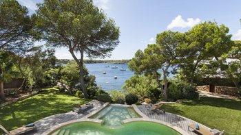 Mit Blick auf eine geschützte Bucht an der Südostküste der Insel, liegt Ca’n Mondrago inmitten von Rasengärten, die von viel Grünem abgeschirmt und durch den Schatten der Bäume gekühlt werden. Mit klimatisierten Innenräumen, wunderschön eingerichteten „Räumen“ im Freien und viel Platz in beiden verwischt die sehr schicke Villa die Grenzen von Innen- und Außenkomfort. Auf der oberen (Eingangs-)Ebene öffnet sich eine gut ausgestattete Küche zum Grundstück, wo es eine Palmengarten-Ess-/Sundowner-Terrasse gibt. Ein offen geschnittenes Wohn- / Esszimmer hat Türen zu einem überdachten Sitz- und Essbereich mit freiem Meerblick; und es gibt ein Hauptschlafzimmer und ein Zweibettschlafzimmer. All dies spiegelt sich im unteren Erdgeschoss wider, mit einem geräumigen Fernsehraum und zwei Zweibettzimmern, die sich jeweils zum Pool hin öffnen, einem weiteren Zweibettzimmer an der Seite des Hauses, einer Innenküche und einem Wechsel- und sowie einem und Chill-out-Bereich im Freien mit tief gepolsterten Sitzgelegenheiten.