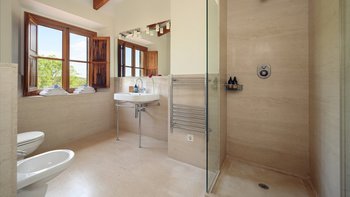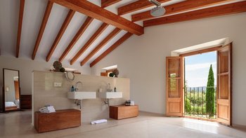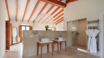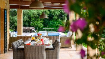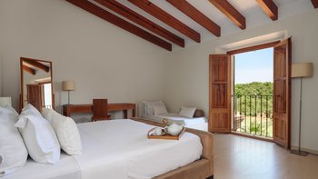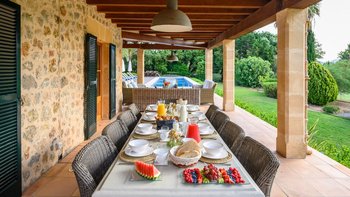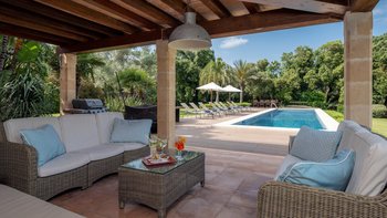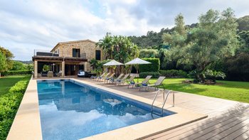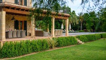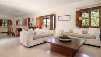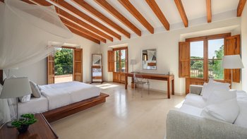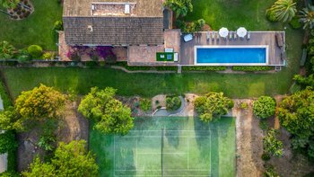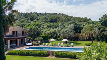 Ca’n Talia ist eine wunderschön abgeschiedene Villa auf Mallorca, umgeben von einem weitläufigen Grundstück und bietet außergewöhnlichen Service. Denen Villa ist in einem charmanten traditionellen Finca-Stil mit modernem Innendesign gestaltet. Im Erdgeschoss befinden sich ein geräumiger Wohn- und Essbereich sowie ein Fernseh- und Spielzimmer, ideal für die Kleinen. Im Obergeschoss befinden sich vier helle und einladende Schlafzimmer mit eigenem Bad. Deren Hauptschlafzimmer verfügt über eine eigene Terrasse mit Blick auf den Tennisplatz. Im Freien bietet der geräumige Essbereich im Freien den idealen Platz für ein Abendessen im Freien mit herrlichem Blick auf das Gelände. Der wunderschöne Privater Pool ist von Palmen umgeben.