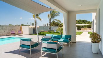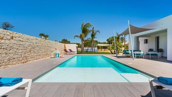 Casa San Lorenzo ist eine wunderschöne Villa nur einen Steinwurf vom Strand von San Lorenzo entfernt, einem beliebten Badeort auf halbem Weg zwischen dem Naturschutzgebiet Vendicari und dem Fischerdorf Marzamemi. Umgeben von einem gepflegten Garten mit üppigen Rasenflächen und einer großen Terrasse mit Außenküche und Grill, ist diese charmante Villa ideal für das Leben im Freien mit einem herrlichen Salzwasserpool zum Abkühlen. Das kürzlich erbaute Casa San Lorenzo verfügt über helle, komfortable Zimmer, alle auf einer Ebene, darunter ein modernes Wohn-Esszimmer mit Küche, drei Schlafzimmer und drei Duschbäder.