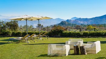Dimora dell’Etna ist eine wunderschöne Landvilla mit Panoramablick auf die umliegende Landschaft, entworfen für optimale Ruhe und Privatsphäre.