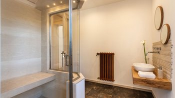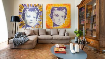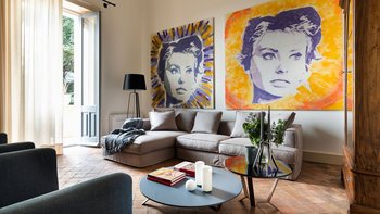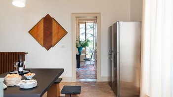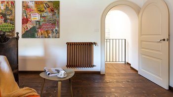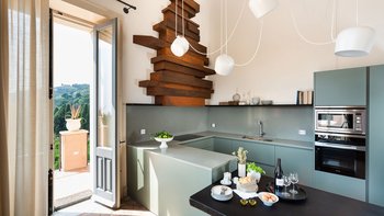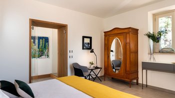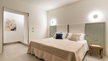 Im Inneren der Villa treffen moderne Interieurs auf traditionelle historische Elemente und schaffen eine reiche Mischung aus älteren und neueren Elementen. Im Erdgeschoss befinden sich vier der sechs Schlafzimmer der Villa, von denen eines über einen eigenen Wohnbereich verfügt, während jedes über ein eigenes Bad verfügt. Denen letzten beiden Schlafzimmer befinden sich auf der ersten und zweiten Etage, wobei die Master-Suite über ein eigenes Dampfbad verfügt. Im ersten Stock befindet sich auch ein schönes Wohnzimmer mit Kamin, das mit einzigartigen Kunstwerken und schönen Steinböden ausgestattet ist. Die Gäste können auch die Küche und das Esszimmer auf dieser Etage nutzen, die beide reichlich Tageslicht haben und mit markanten französischen Türen geschmückt sind, die sich auf Zitrusgärten öffnen.