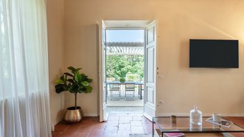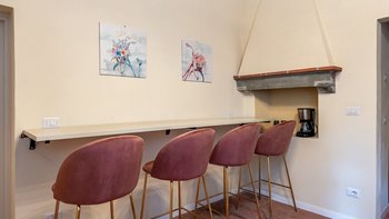 In der Villa sind der offene Grundriss des Wohnbereichs und des Esszimmers perfekt miteinander verbunden, um einen einladenden Raum zu schaffen, in dem die Gäste zusammenkommen und lokale Küchen genießen können, während natürliches Licht frei von Raum zu Raum fließt und den Raum beherrscht. Der Wohnbereich führt auf den Patio und bietet direkten Zugang zum Garten und zum Pool. Deren Küche ist mit einer Frühstückstheke ausgestattet, so dass Sie schnell und bequem essen können, wann immer es Ihnen passt. Beiden Schlafzimmer im Obergeschoss haben ein eigenes farbenfrohes Bad. Der Balkon des Hauptschlafzimmers bietet einen Blick auf den Pool und den Garten – der perfekte Ort für einen erhöhten Blick auf die ländliche Toskana. Deren andere Schlafzimmer verfügt über eine Terrasse mit Tisch, Stühlen und ein paar Liegestühlen für erholsame Tage in der Sonne.