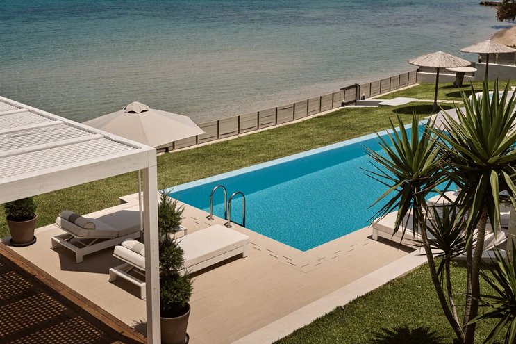 Es dreht sich alles um die Entspannung und den ungestörten Blick auf das Meer in dieser wunderschönen Villa am Strand auf der Insel Zakynthos.