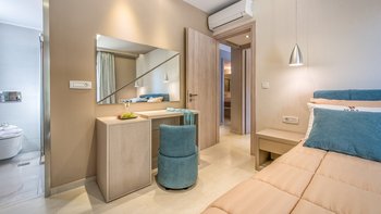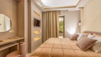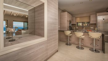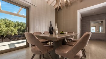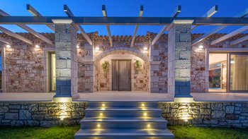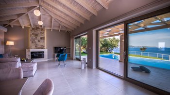 Diese elegante, aus Stein erbaute Poolvilla ist eine der neuesten Ergänzungen an der herrlichen Südwestküste von Zakynthos. Die Villa liegt privat auf einem Hügel oberhalb des Dorfes Limni Keri und bietet einen herrlichen Blick auf das Meer bis zur Schildkröteninsel von Marathonisi. Obwohl das Haus charmant modern ist, wurde es so gestaltet, dass es den klassischen zakynthischen Inselstil beibehalten hat. Es gibt ein unglaublich einladendes natürliches Design im Inneren – angefangen bei der großen, offenen Lounge mit riesigen Schiebetüren, die das Beste aus der idyllischen Meereskulisse machen. Abgesehen von den gelegentlichen Farbtupfern trägt die Villa einen wunderbar neutralen Stil im gesamten Erdgeschoss. Es gibt einen Esstisch, einen großen Steinkamin und einen modernen Küchenbereich mit Barhockern und allem notwendigen Komfort. Denen gefliesten Bäder sind modern und jedes der drei Schlafzimmer wurde einfach gestaltet, mit einem großen Doppelbett als herausragendes Herzstück. Zwei Schlafzimmer bieten auch den zusätzlichen Genuss eines eigenen Bades. Treten Sie nach draußen und es gibt einen wunderbar angelegten Garten, um Sie zu begrüßen. Freuen Sie sich auf Hängematten, Liegestühle, sonnendurchflutete Poolterrassen und einen eingebauten Grill – und einen atemberaubenden Pool, von dem Sie einige der fantastischsten Ausblicke auf das Ionische Meer genießen können. Wenn Sie Lust haben, in den Tag zu gehen, ist das Limni Keri Beach nur fünf Minuten von der Villa entfernt, oder es ist eine 13 km lange Fahrt zum wunderschönen goldenen Sandstrand von Kalamaki Beach.