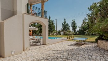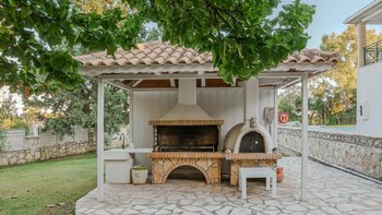 Es gibt nicht viel mehr als den Luxus eines kleinen Sandstrandes direkt vor der Haustür. Dieser schöne Privatvilla in der Nähe des Dorfes Lithakia ist ein absoluter Genuss – gehen Sie über den kleinen Privatweg am Ende des Gartens und schlagen Sie einfach auf den weichen Sand auf, der die Aussicht auf Ihre Villa umgibt. Der Außenbereich der Villa Raphaela ist unglaublich großzügig. Es gibt große Rasengärten für Spiele und einen großzügigen privaten Pool mit Liegestühlen und Brollies auf der gepflasterten Terrasse rundherum. Ein schattiger Sitzbereich mit Blick auf den herrlichen Meerblick ist ein fantastischer Ort für eine faule Siesta oder Entspannung vor oder nach dem Abendessen – und es gibt einen überdachten Esstisch mit einem Grill und einem Pizzaofen im Freien, so dass Sie wirklich in die Stadt gehen können, um eine Villa im Freien zu essen.