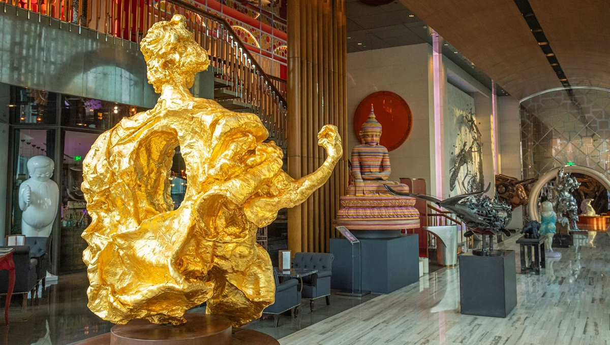 Das Éclat Beijing wirkt wie eine Mischung aus Boutiquehotel, Kunstgalerie und futuristischer Mall. Hinter dem eindrucksvollen Mondtor öffnet sich eine lichtdurchflutete Lobby voller zeitgenössischer Skulpturen und Installationen. Das Haus verbindet traditionelle Elemente Pekings mit extravaganten Symbolen des modernen China. Jeder Winkel überrascht – sei es durch spektakuläre Kunst, individuelle Zimmer oder den herzlichen Service, der das Erlebnis perfekt abrundet.