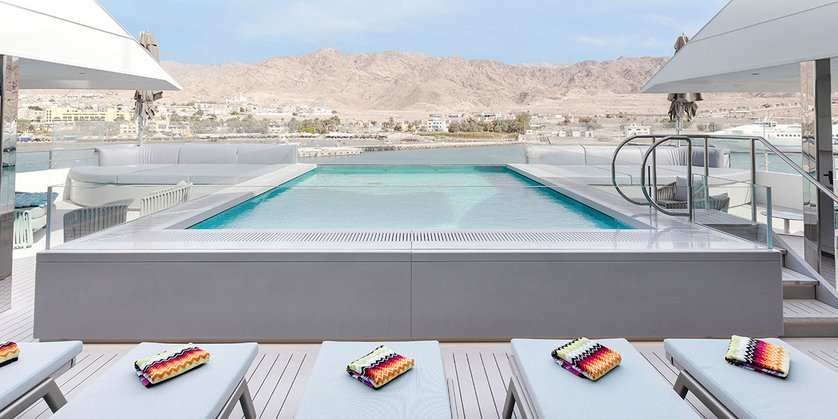 Der kleine Infinity Pool wird täglich gefüllt mit frischem Meerwasser (routen-/wett erabhängig) und sorgt für eine angenehme Erfrischung besonders während der heissen Sommertage. Lounges und Liegeflächen laden zum entspannten Verweilen an Deck ein, und an den Aussenbars werden kühle Drinks serviert. Die Badeplatt form am Heck ermöglicht den Sprung ins Meer; sie wird an geeigneten Reisetagen geöffnet und dient gleichzeitig als Zugang zum Tenderservice für Landgänge. Ob Sie nun eine gemütliche Lesestunde oder die beste Aussicht auf das Meer geniessen möchten, die Observation Lounge ist der geeignete Ort und die absolute Ruhezone der Yacht.