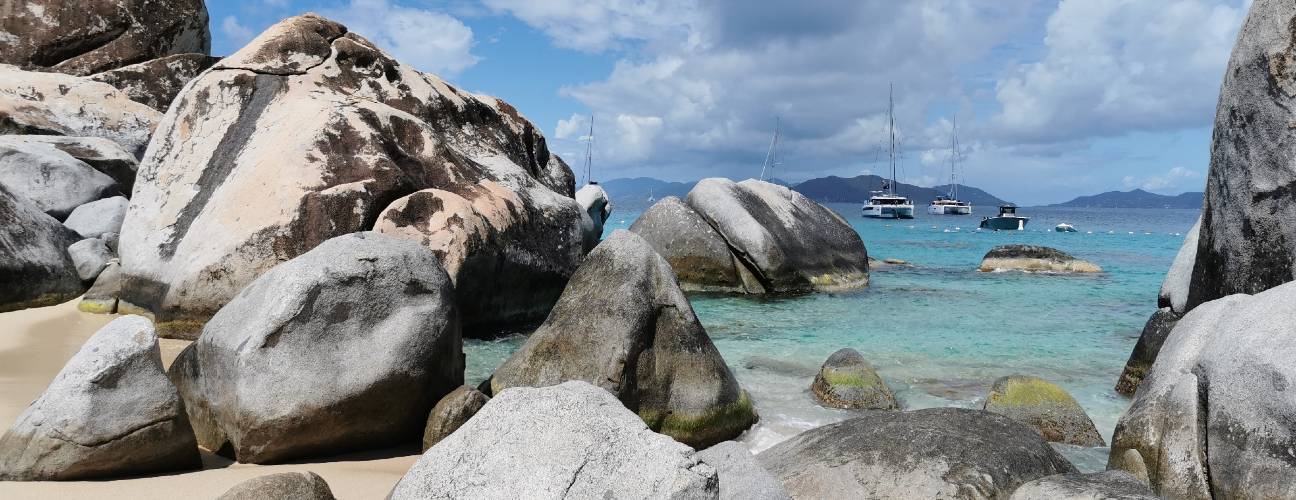 Prickly Pear Island (British Virgin Islands) ist eine kleine, unbewohnte Insel nördlich von Virgin Gorda und gehört zu den Britischen Jungferninseln (BVI). Sie ist ein beliebter Ankerplatz für Yachten, da sie von flachem, kristallklarem Wasser und Korallenriffen umgeben ist. Infrastruktur gibt es kaum – meist nur eine einfache Strandbar oder temporäre Einrichtungen. Prickly Pear steht ganz im Zeichen von Strand, Schwimmen, Schnorcheln und Wassersport und verkörpert perfekt das entspannte Insel‑ und Yacht‑Feeling, das für SeaDream‑Routen typisch ist. Am Morgen hatten wir noch einen Landausflug über die Reederei gebucht: Über die steilen Strassen und Hügel ging es morgens um 8 Uhr zu The Baths in Virgin Gorda. Riesige, vom Meer glattgeschliffene Granitfelsen bilden Höhlen, Grotten und natürliche Pools direkt am Strand. Über schmale Pfade, Leitern und Durchgänge erkundet man dieses einzigartige Labyrinth aus Fels und Wasser – ein echtes Postkartenmotiv. Wir waren die ersten an der beliebten Ausflugsdestination – bis wir unsere Entdeckungsrunde beendeten, kamen die Ausflugsteilnehmer von grossen Schiffen erst an und mussten anstehen.