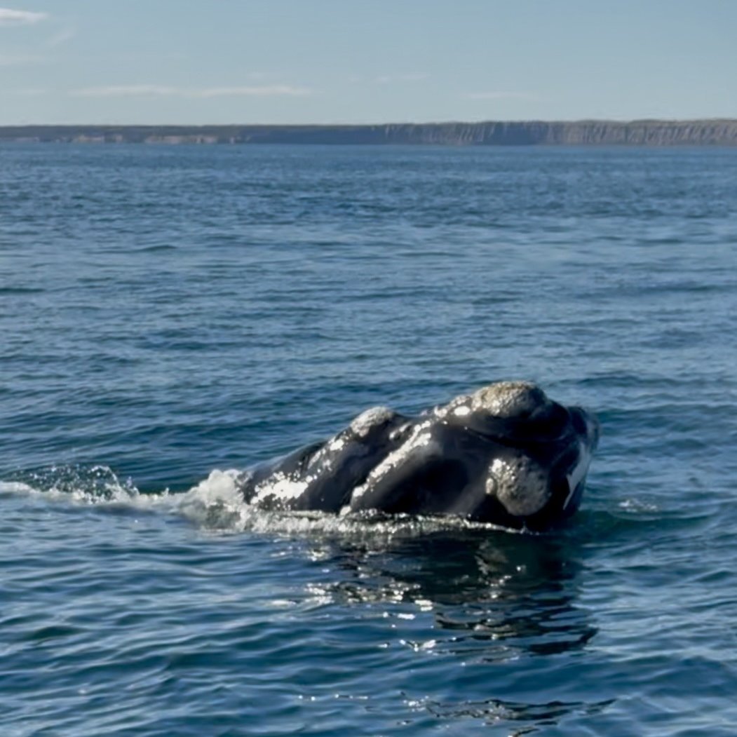 Bei einer Bootstour im Golfo Nuevo kommen wir dann den Südlichen Glattwalen unglaublich nahe. Sie gleiten elegant unter unserem Boot hindurch, tauchen neben uns auf und präsentieren ihre mächtigen Flossen – ein unvergesslicher Moment.