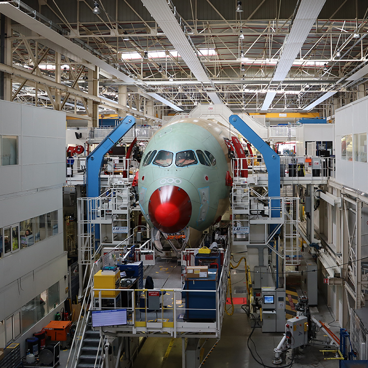 In der sogenannten Final Assembly Line (FAL) werden die Einzelteile aus 16 verschiedenen europäischen Airbus-Standorten zusammengefügt – geliefert vom ikonischen Airbus-Beluga-Transporter. Der Innenausbau beginnt mit der Installation von Küchen, Toiletten, Trennwänden sowie Ruhebereichen für die Crew. Danach werden die grossen Rumpfteile mit über 12’000 Nieten dauerhaft verbunden. Flügel, Leitwerke und das Fahrwerk folgen ebenso wie die ersten Elemente der Kabinenausstattung – von Teppichen bis zu Sitzen der Economy Class.