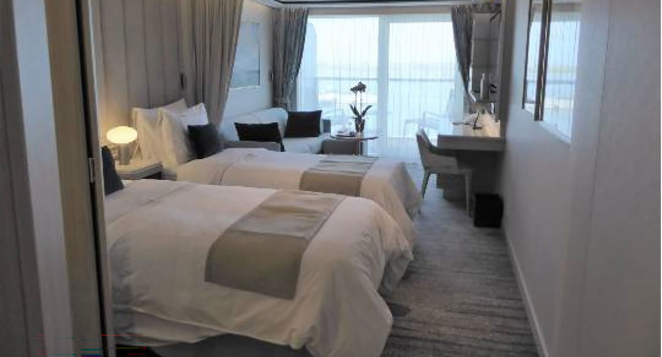Die Junior Grand Suite hat die Eigenschaft en der Grand Suite geerbt. Sie befi ndet sich ander obersten Bugposition mit spektakulärem Ausblick. Die Innenausstatt ung umfassteinen geräumigen Wohn- und Essbereich sowie ein abgelegenes Schlafzimmer. Die Junior-Suite ist als Ein-Schlafzimmer oder Zwei-Schlafzimmer-Variante (mit Classic VerandaSuite) erhältlich. Auch hier lohnt es sich früh zu buchen (4 Suiten).